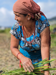 As we looped our way through the hills, we stopped to meet and to talk- with villagers and farmers, children on their way to school, women harvesting rice or lugging loads on their backs, young fathers who grow potatoes in a patch next to the hovel they call home.