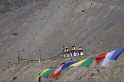 Spiti means "middle country" that lies between India and Tibet. It was and still is the ancient gateway to Tibet—a rugged, untamed, cold desert area surrounded by a timeless windswept landscape with bizarre rock formations. It is dotted with little white-washed houses huddled amid green barley fields below monasteries perched on crags of thousands of feet above where people have lived for centuries, enduring the valley’s harsh environment.